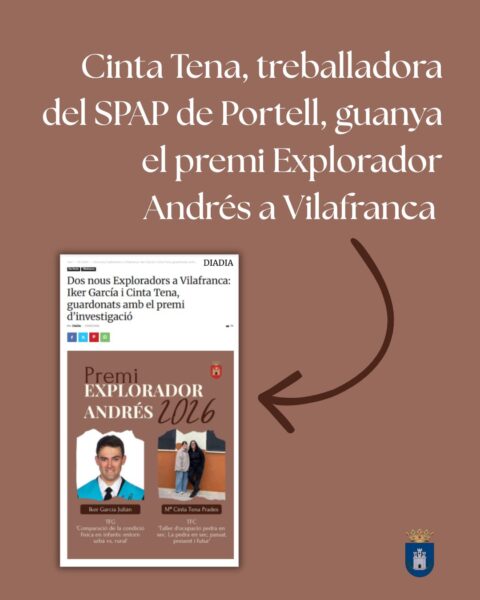 febrero 4, 2026 In Ayuntamiento 0 Cinta Tena, trabajadora del SPAP de Portell, gana el Premio Explorador Andrés a Vilafranca